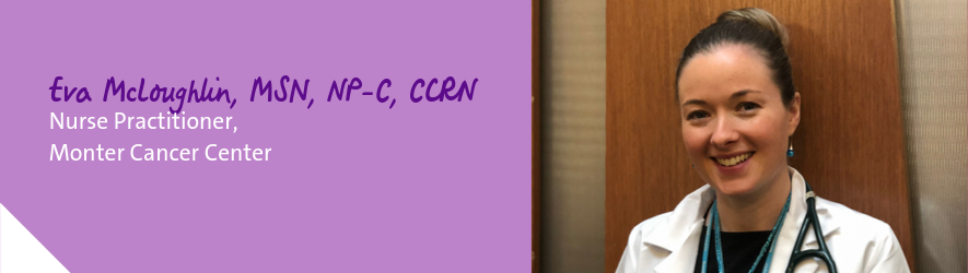 The intricacy of bone marrow transplants piqued her interest in oncology and brought her to Monter Cancer Center after she graduated. There she works delivering care on the bone marrow transplant team: “As an NP on the bone marrow transplant team, I am able to help ensure patients have the best quality of life in their time of need.”