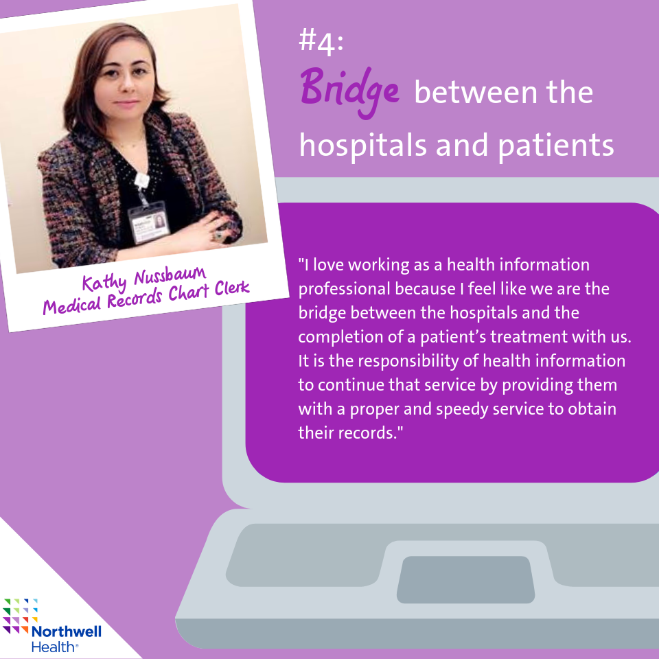 We’re celebrating the hard-working health information professionals who are a part of the Heath Information Management (HIM) team at Northwell Health. Our HIM team members work daily to acquire, analyze and protect patient medical information. With such an important job, there’s a lot to love about being a HIM professional! Check out our team members’ top seven reasons!