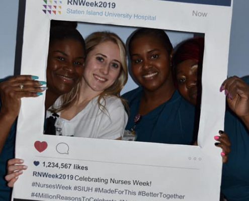 With 16,000+ nurses across Long Island, New York City, Staten Island and Westchester, there were thousands of reasons to celebrate Nurses Week at Northwell Health. Nurses Week is a time for nurses to reflect on the countless lives they’ve touched throughout the year and honor the differences they’re making for patients, families and coworkers. Celebrations across the organization recognized the dedication, skill and compassion that RNs provide 365 days a year. Nurses Week is not only a celebration but a true representation of Northwell’s culture and commitment to our nurses. See below for only 10 of the many ways we celebrated Nurses Week. Also, explore job opportunities and apply to join our creative, fun and compassionate nursing team.