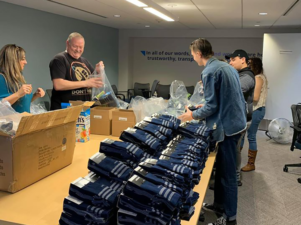 The CEMS team, through the launch of Packages of Hope, created care packages for homeless men and women to help take care of them during winter months. The Packages of Hope are distributed throughout NYC, Nassau and Suffolk Counties by our CEMS crews. The team donated items and their time to put together the care packages which included feminine products, warm socks, blankets, water, hand warmers and snacks.