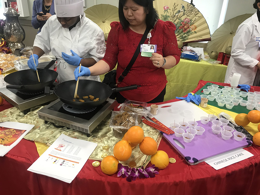 Northwell’s Bridges Asian BERG leads, Suki To and Lulu Liu, collaborated with Lenox Hill Hospital’s Human Resources department, Northwell’s Diversity and Health Equity (D&HE) Site Council, and team members from Lenox Hill’s cafeteria to provide a taste of traditional foods served during the Lunar New Year. This included Chinese, Japanese and Korean rice cakes, traditional New Year candies, dry fruits and tea tastings.
