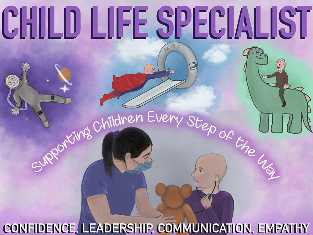 After meeting with the team, the students chose to have their poster focus on the child life specialists who help make pediatric patients more comfortable during their hospital visit.