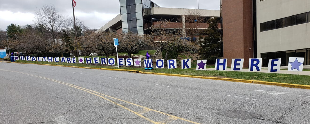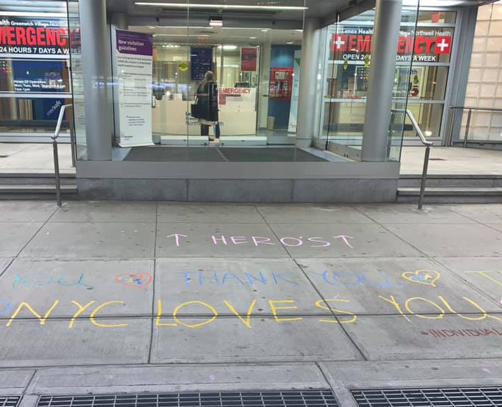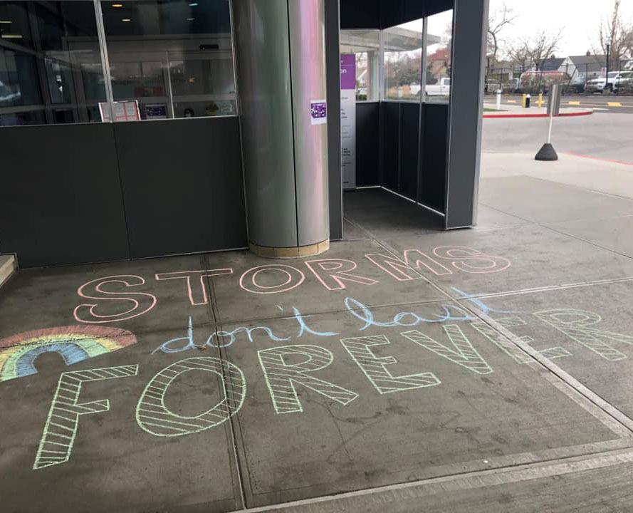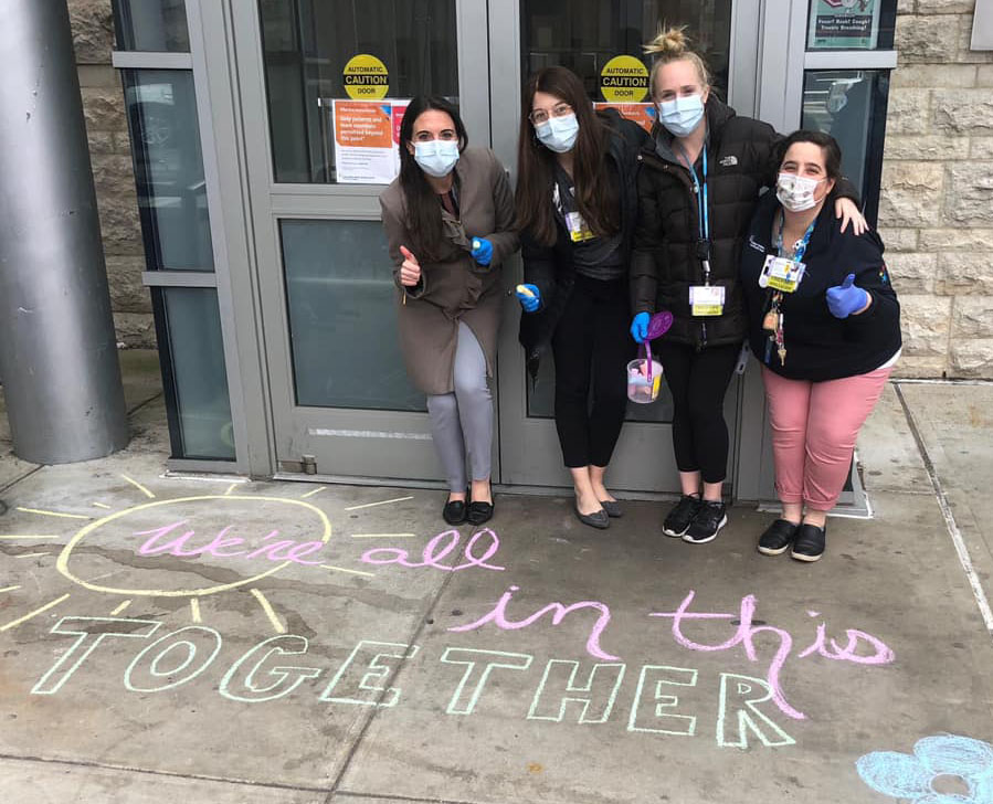 Throughout the health system, chalk art has been popping up outside our hospitals. Messages from team members and our communities are being drawn to thank our workers and give them something bright and cheery to look at as they walk in and out of work.