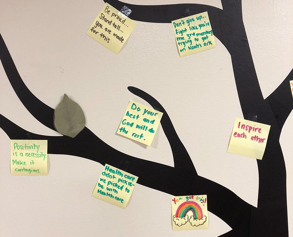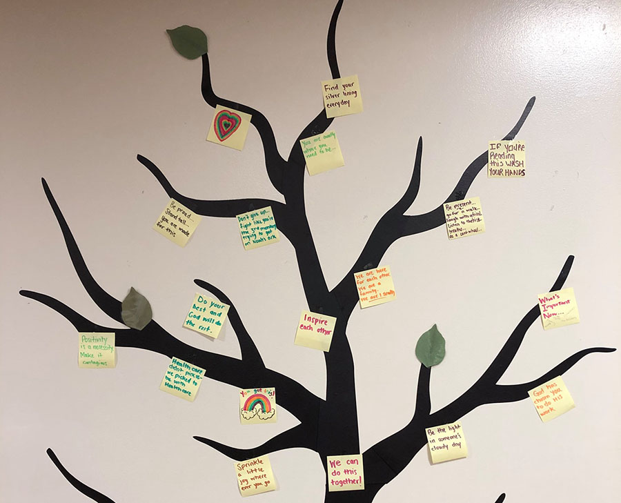 The 1 South Rehab team at Glen Cove Hospital created an Inspiration Tree within the hospital to leave small tokens of wisdom and motivation for team members and patients. These messages help them to find optimism and the importance of what matters most.