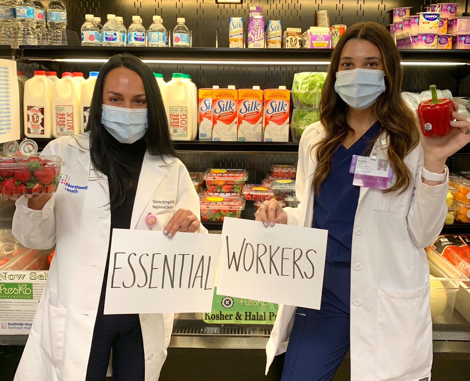 Hospitals across Northwell realized the need to help support our healthcare heroes get the necessities they need at home. Hospital cafes have turned into temporary grocery stores, where our nurses, environmental services workers, physicians, therapists, transporters, techs and others can safely shop to stock their pantry or choose a freshly prepared meal to take home.