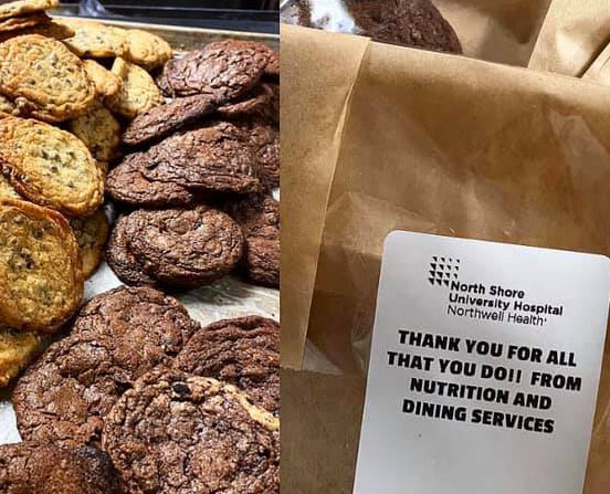 Kindness is connecting our teams across Northwell through video messages, photos, cards and other countless examples of ongoing support and humanity. For example, Krista Griffin, a patient access team member at Southside Hospital, raised money with her family to have catered food delivered to overnight workers in the ED. Also, the NICU team at Cohen Children’s Medical Center created and delivered care packages to other Northwell hospitals, and our nutrition and dining services teams baked fresh cookies for workers to bring home after a long day.