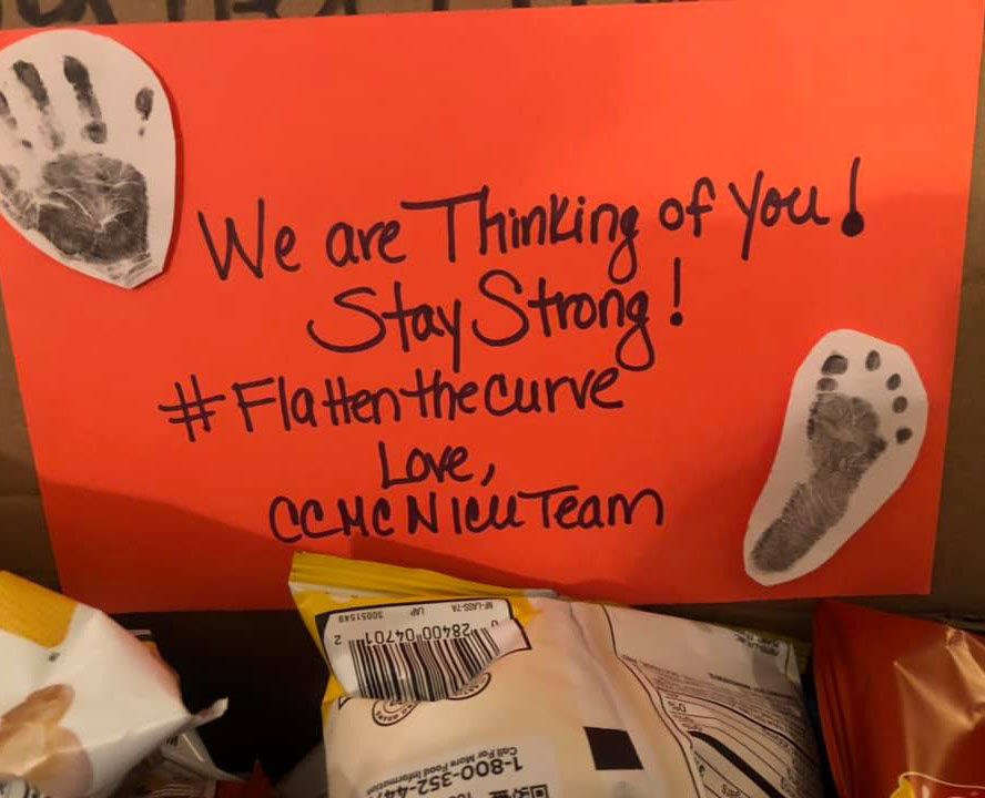 Kindness is connecting our teams across Northwell through video messages, photos, cards and other countless examples of ongoing support and humanity. For example, Krista Griffin, a patient access team member at Southside Hospital, raised money with her family to have catered food delivered to overnight workers in the ED. Also, the NICU team at Cohen Children’s Medical Center created and delivered care packages to other Northwell hospitals, and our nutrition and dining services teams baked fresh cookies for workers to bring home after a long day.