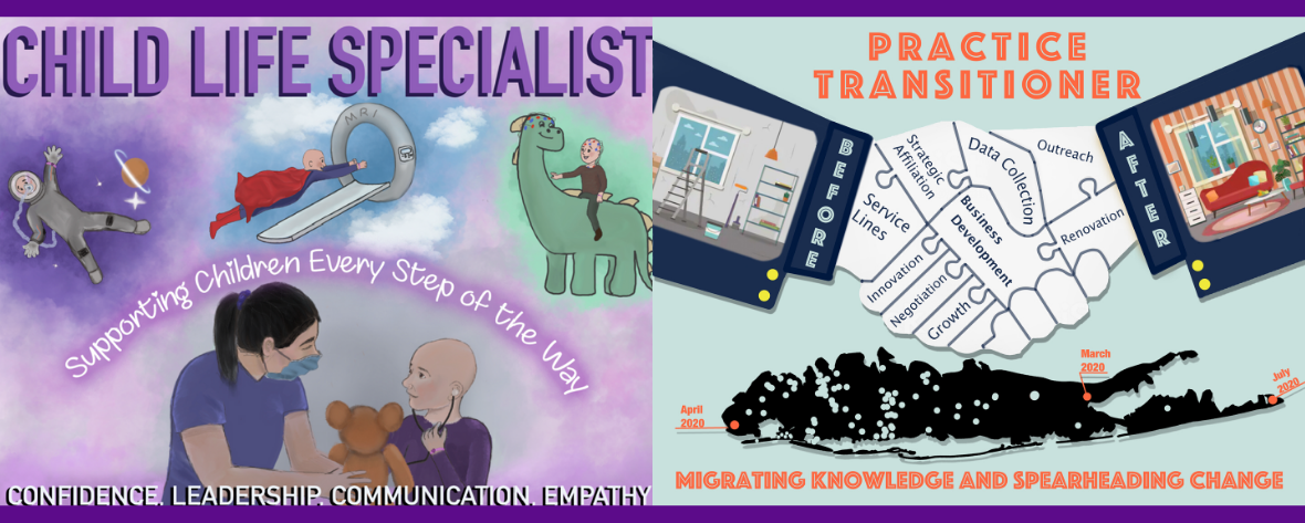 After meeting with the team, the students chose to have their poster focus on the child life specialists who help make pediatric patients more comfortable during their hospital visit.