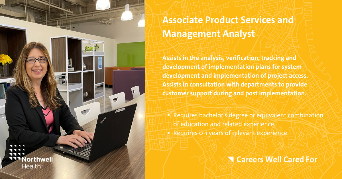 Discover a truly innovative and enterprising career on Northwell’s IT team as a product services and management analyst. Our team members have opportunities across our health system such as access to free educational and professional development courses, mentorship programs, tuition reimbursement benefits and more.