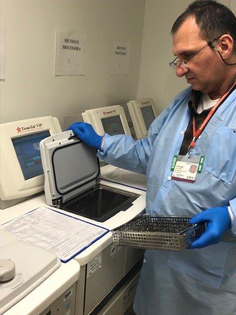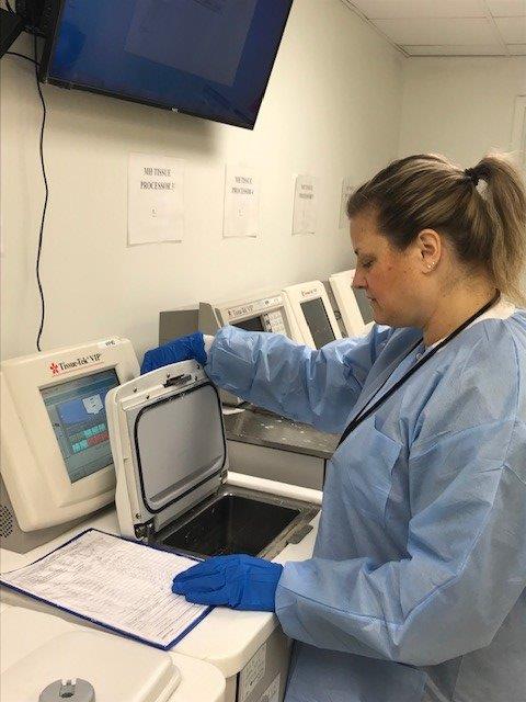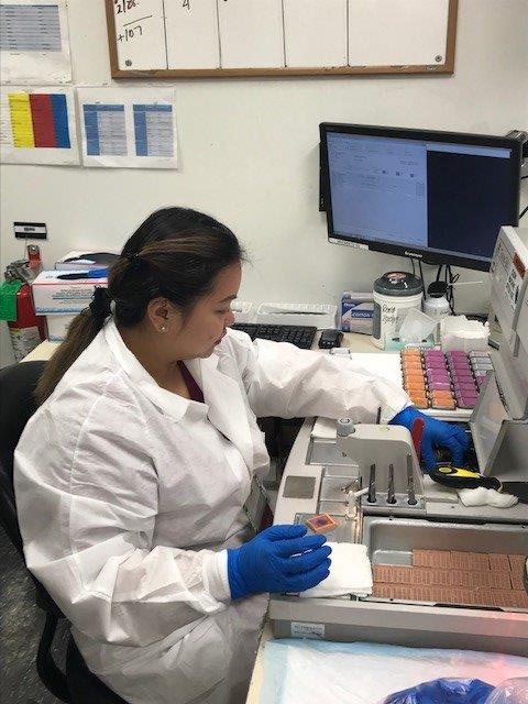 While patients do not see or speak with the lab team helping behind the scenes, the connection is still very meaningful for the histotechs. They care about the production side of their work and the quality of the slides. All histotechs will tell you they treat every specimen as if it belongs to one of their own family members waiting for their test results.