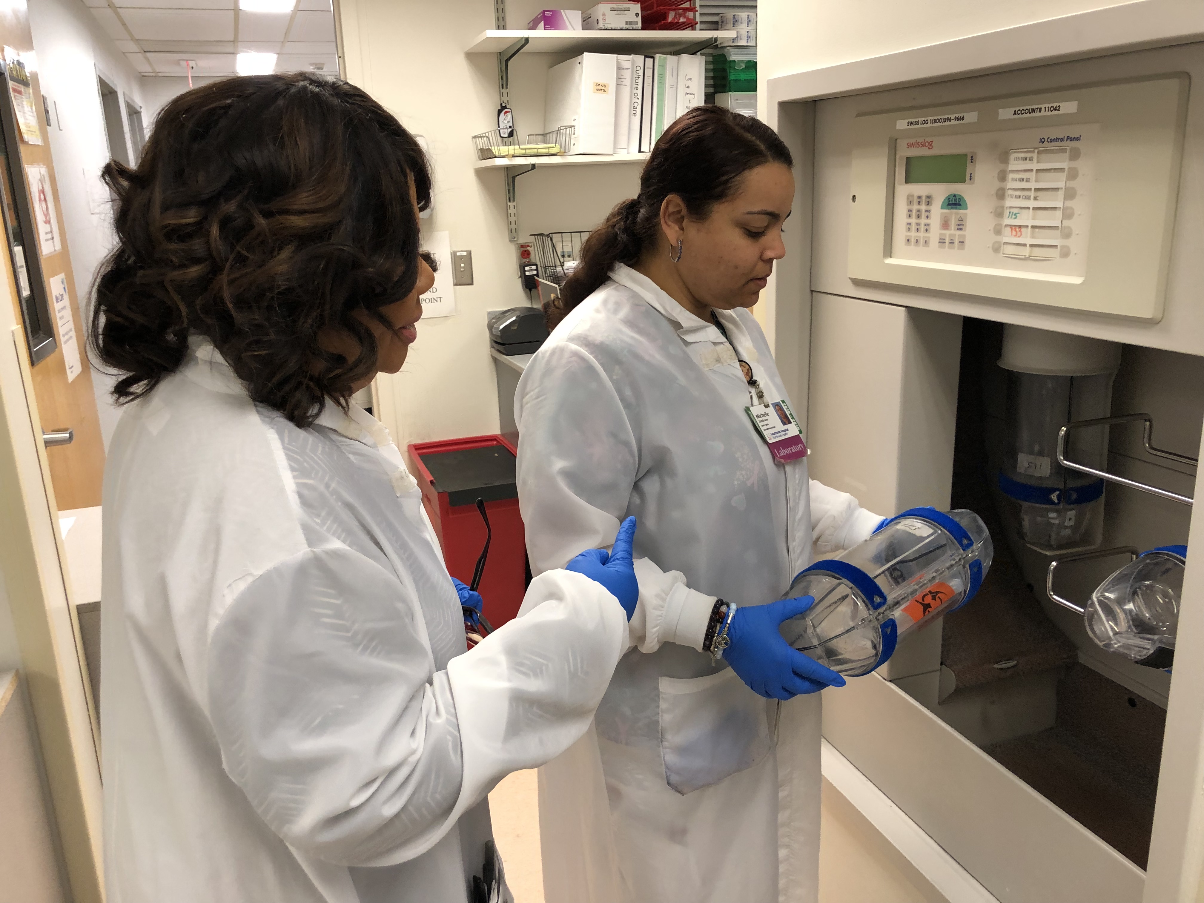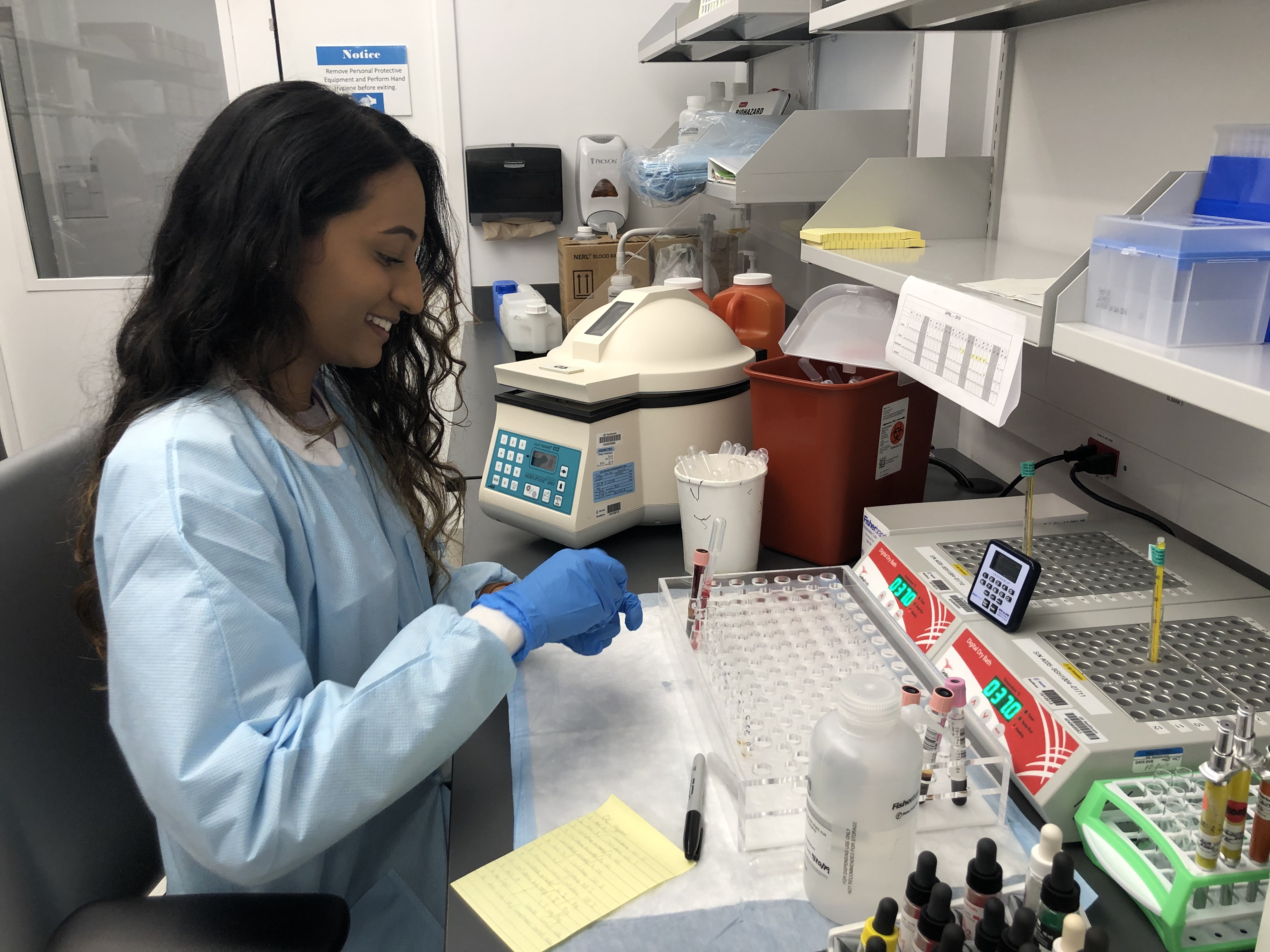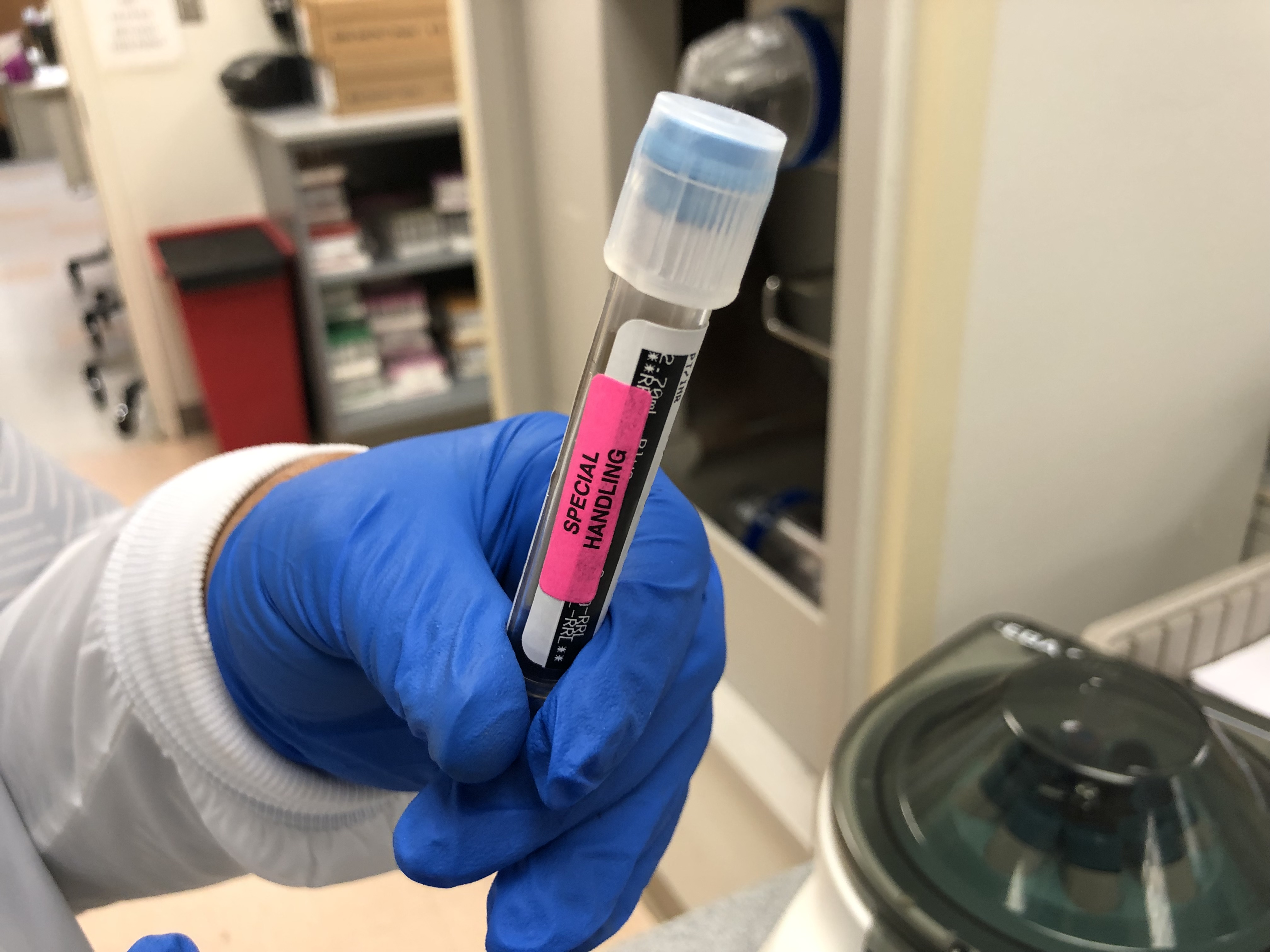Certain testing may require interaction with a blood bank technologist, like Trisha Jaikaran, who tests the sample for blood type, blood screens, and antibody screens. At the Core Lab, they test mainly the OB-GYN patient population and work with the doctors and Client Services to deliver patients their results.