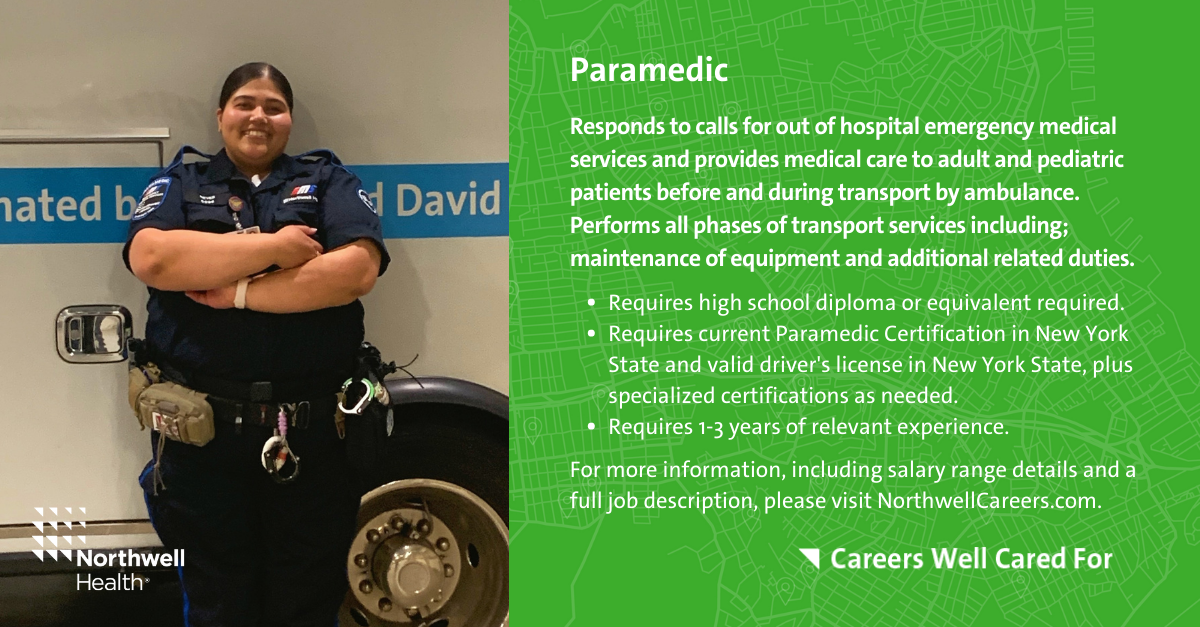 Discover a career well cared for and learn more about paramedic and EMT opportunities at Northwell Health.