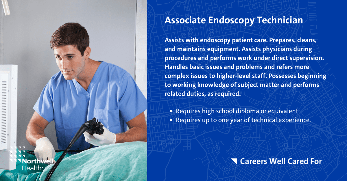 Below, you will find some of the clinical care career opportunities Northwell offers that only require a high school to vocational school or equivalent level diploma, with either a certification and/or training program experience.