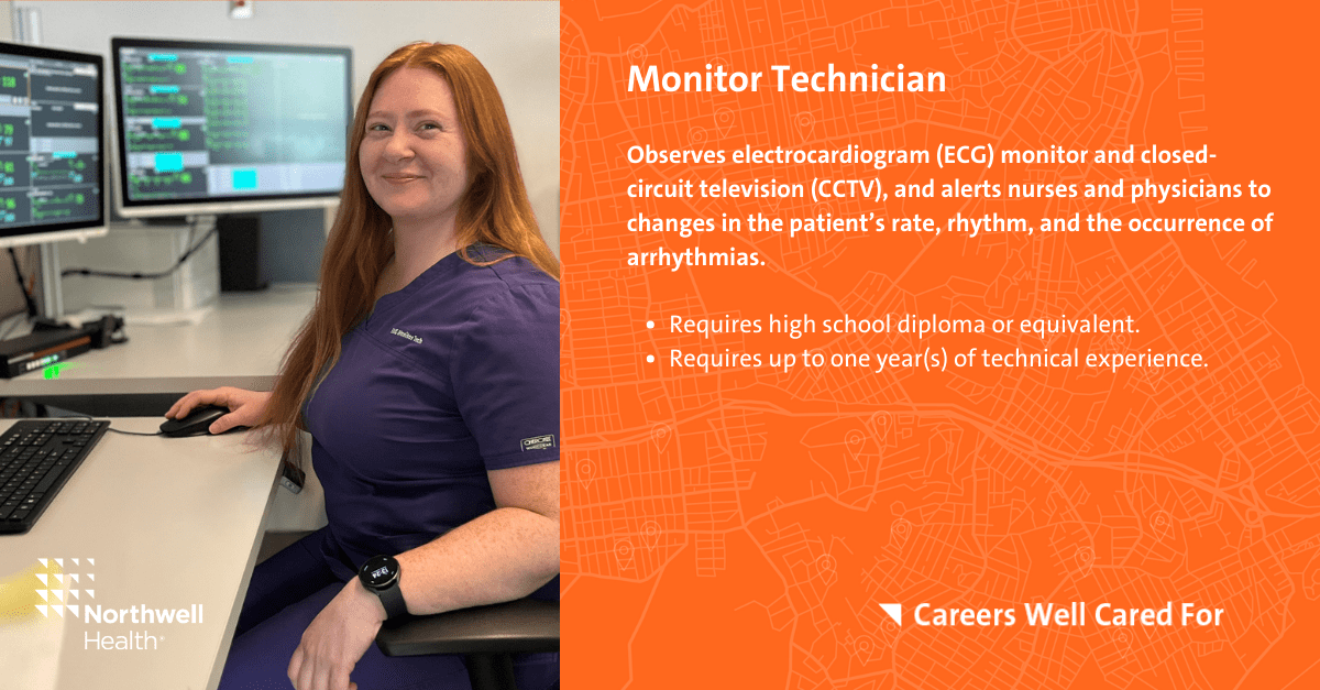 Are you looking to grow your clinical career as an EMT? There are many paths to take, and at Northwell, we want our team members to feel empowered to develop and grow within our organization—whatever path they choose. See below for one of the many ways you can grow by leveraging transferable skills as an emergency medical technician (EMT) to become a telemetry technician and ultimately a registered nurse.