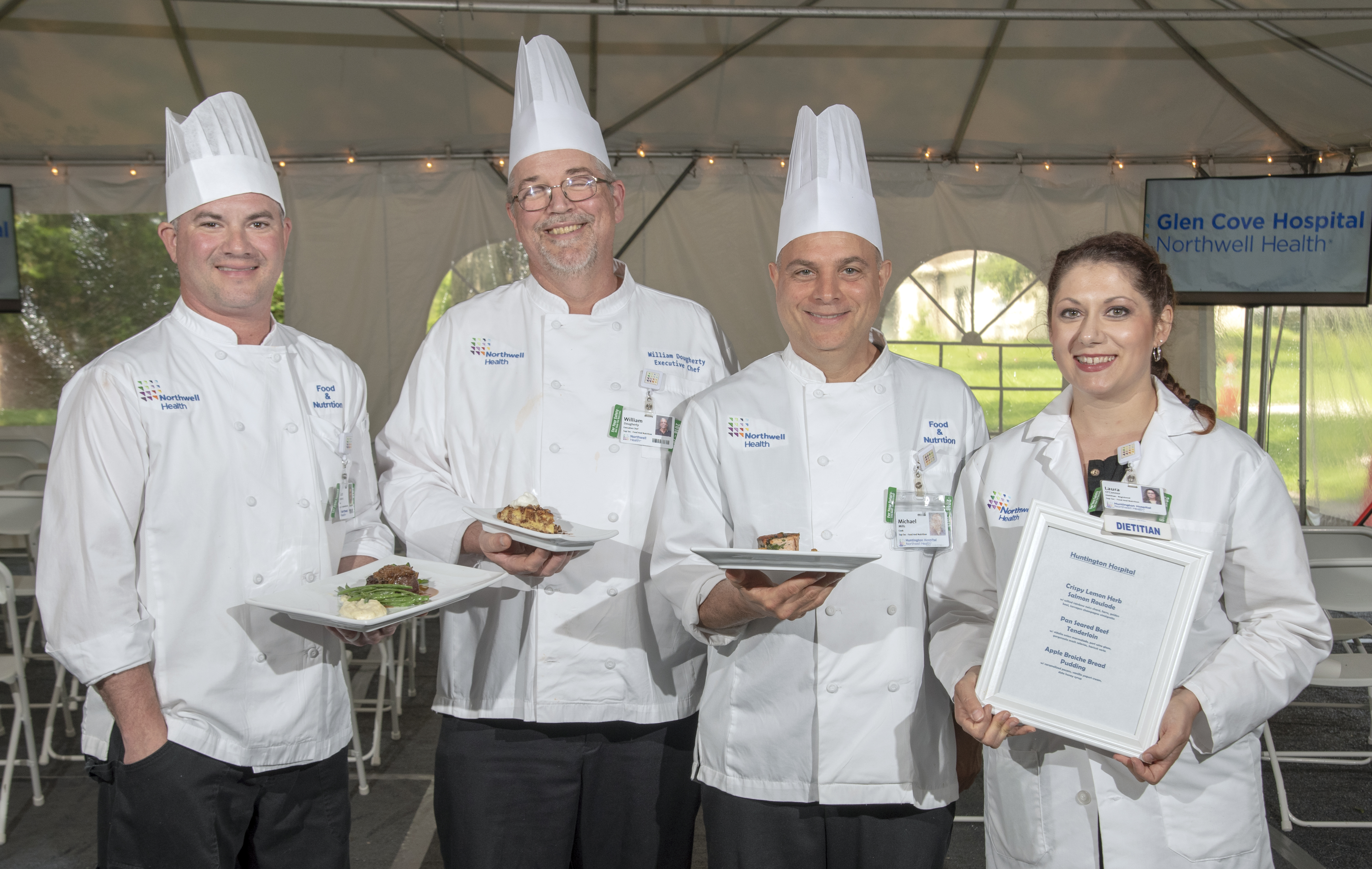 The first prize was awarded to the team from Peconic Bay Medical Center, whose winning dishes included: a chilled English pea soup with goat cheese panna cotta for an appetizer, a deconstructed seafood stew as the main entrée, and a raspberry yogurt mousse for dessert. Coming in second place was Syosset Hospital and in third place was Northern Westchester Hospital.