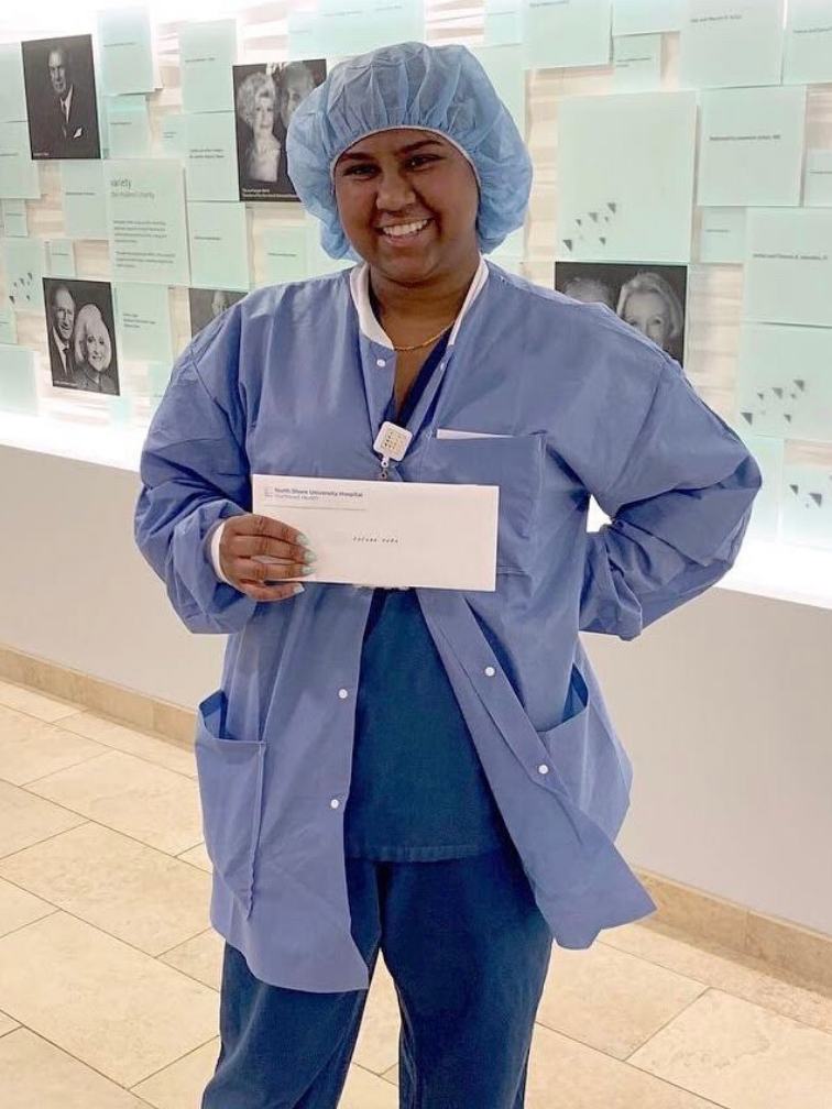 Through the help of Northwell’s tuition reimbursement program*, team members like Sypria can go back to school to continue their education and progress into fields such as nursing with financial assistance. Sypria did just that and NSUH worked with her and other surgical technologists who are seeking to become RNs to help develop their skills and grow professionally. The surgical technologist program at NSUH doesn’t just prepare surgical technologists for the opportunity to go into a nursing role, it also fosters their growth in their current roles. Sypria appreciated this dual approach to her career transition, “I became proficient in sterile technique, instrumentation, and procedures and I used my expertise as a surgical technologist to enable my smooth transition into OR nursing.”