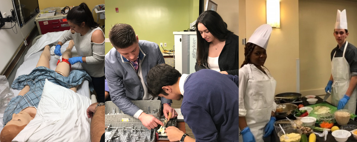 At North Shore University Hospital, students from Baldwin High School learned about all of the different career opportunities that exist within nutrition and culinary. Team members led them in a tour of the department before challenging them to cook a healthy meal.