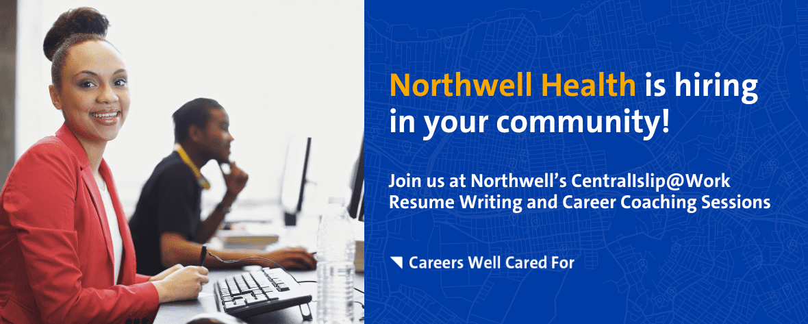 Raise your career expectations with a career well cared for at Northwell Health. We invite you to attend Northwell’s CentralIslip@Work Resume Writing and Career Coaching Workshop. Connect with our recruiters and explore job opportunities available at Northwell Health from food service to registered nurses, and administration to social work — and more.