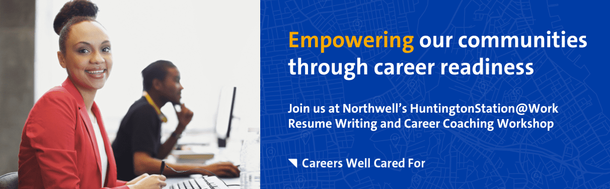 Raise your career expectations with a career well cared for at Northwell Health. We invite you to attend Northwell’s HuntingtonStation@Work Resume Writing and Career Coaching Workshop. Connect with our recruiters and explore job opportunities available at Northwell Health, from administration to registered nursing — and more.