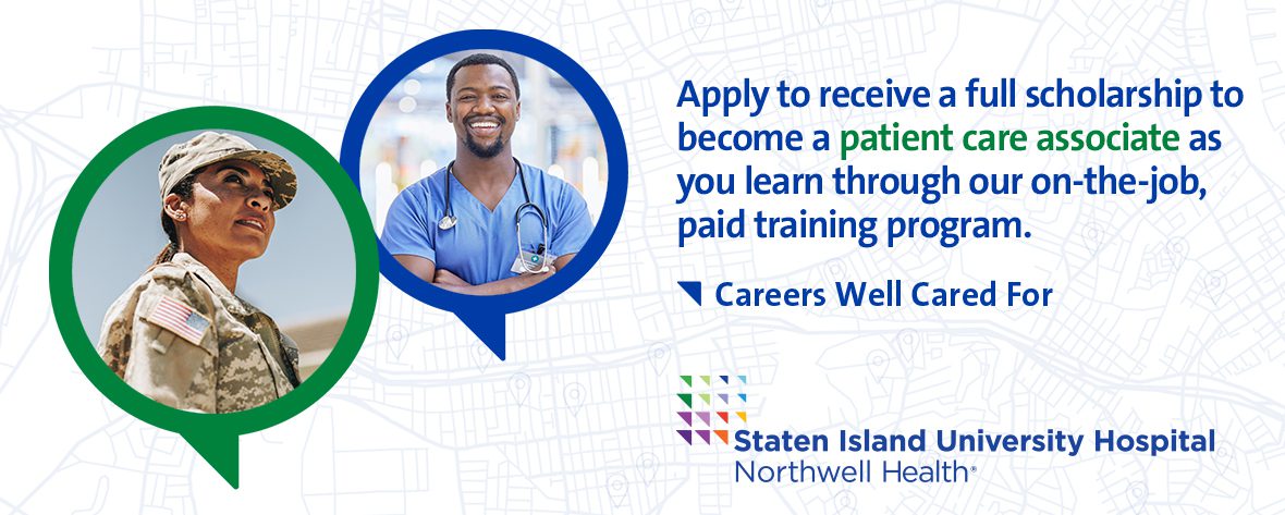 Welcoming Veterans and Active Service Members to apply for Northwell Health’s Staten Island University Hospital Train and Earn Patient Care Associate Program