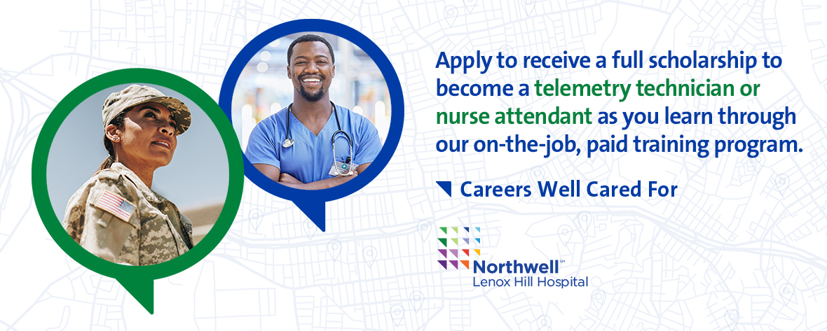 Welcoming Veterans and Military Service Members to apply for Northwell Health’s Lenox Hill Hospital Train & Earn Telemetry Technician and Nurse Attendant Program